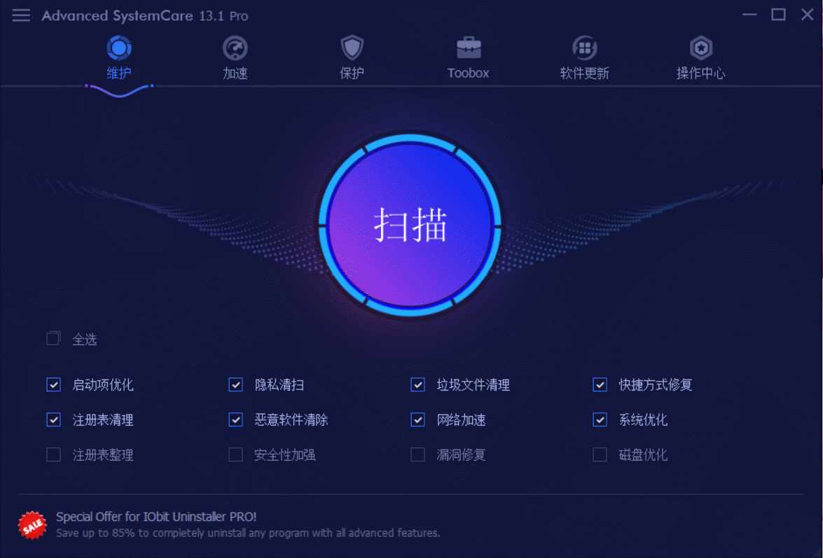 Advanced SystemCare是一款功能强大的系统清理优化软件,该软件提供的主要功能有:启动项优化、注册表整理和清理、隐私清扫、垃圾文件清理、快捷方式修复、恶意软件清除、网络加速、系统优化、安全性加强、漏洞修复、磁盘优化等,能够满足所有用户的日常系统维护需要,通过对系统全方位的诊断,找到系统性能的瓶颈所在,并将测试结果显示出来,可以帮助用户检测系统的问题,修复有错误的地方,进而提升系统的效率。