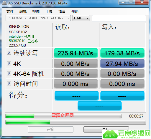测试速度取决于读取和写入数据的可压缩性。此测试是有针对性的填充随机数据 0,数据 0 是很容易被压缩的,而其它随机数据几乎是不可压缩的。