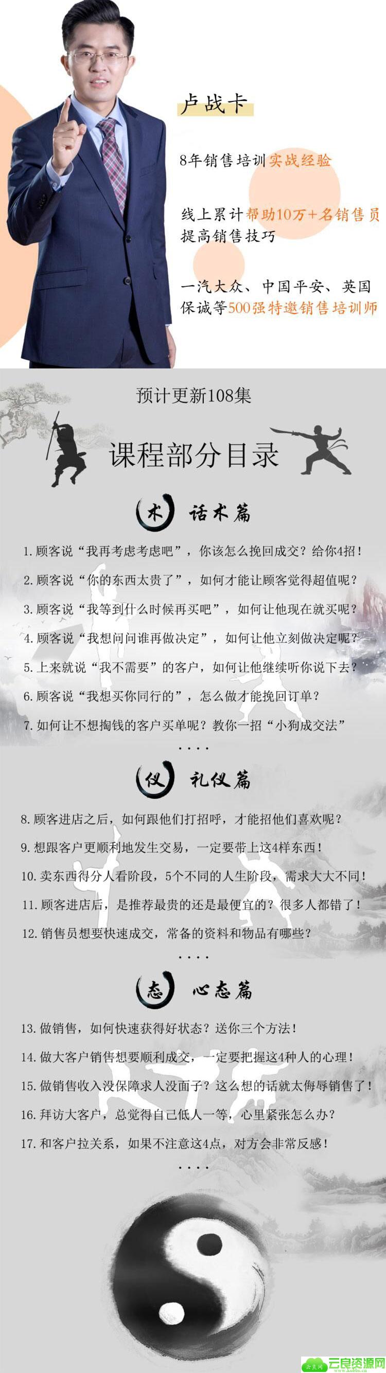 《108套销售心法》采用了108个真实销售场景,全面讲解我们在销售过程中,所遇到的各种抗拒场景,教你如何快速解除抗拒,成功签单!