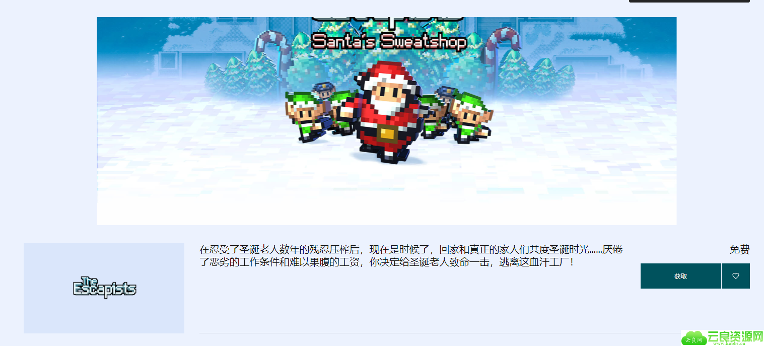 领取地址:https://www.epicgames.com/store/zh-CN/product/the-escapists/santas-sweatshop