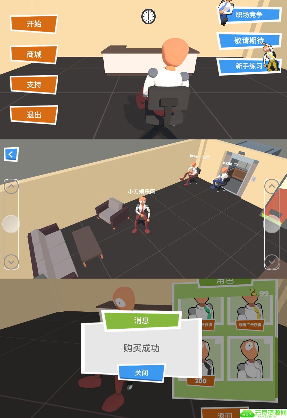 这是一款无厘头的魔性游戏。玩家控制一个无聊的员工在办公室中移动,玩家只能坐在转椅上,操作腿部进行移动控制。别迟到,优先登上电梯玩家通过,免广告即可获得角色和金币。