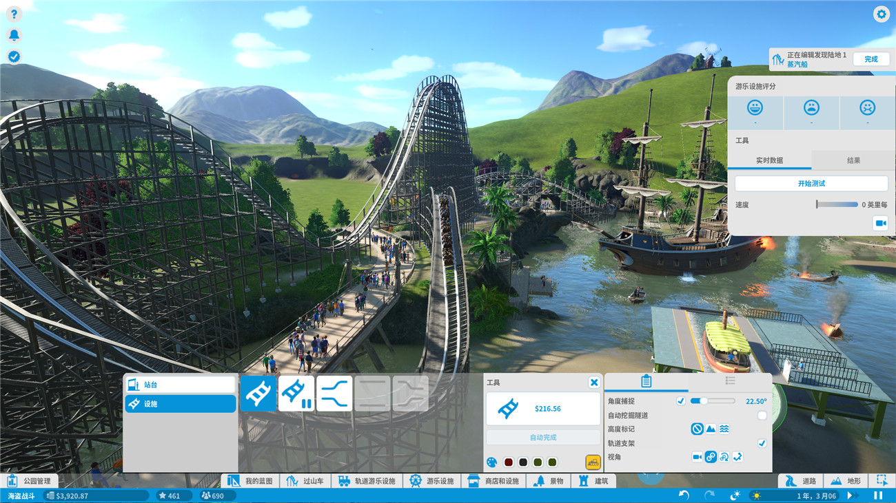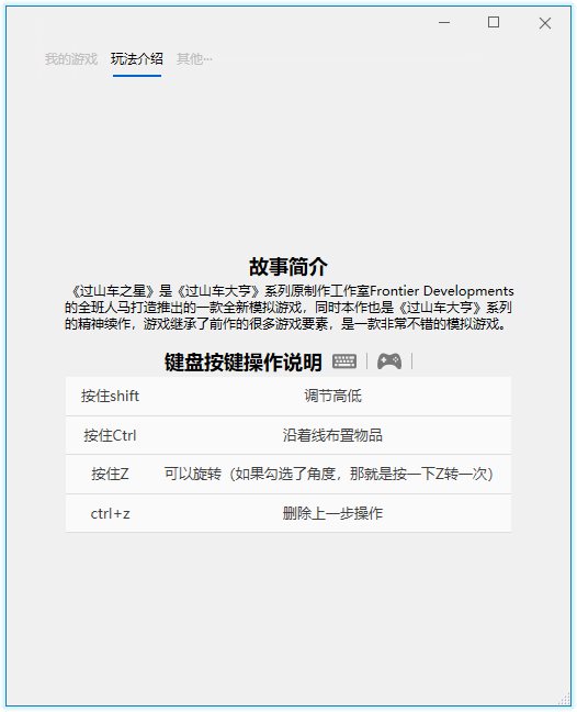 《过山车之星(Planet Coaster)》是由《过山车大亨》系列原制作工作室Frontier Developments的制作发行的一款模拟经营建造类游戏,同时本作也是《过山车大亨》系列的精神续作,游戏继承了前作的很多游戏要素,是一款非常不错的模拟游戏。 相信很多玩家在游乐园都留下过美好的回忆,同时也拥有一个将游乐园搬回家的梦想。虽然我们不能真的把游乐园搬回家,但是却能在《过山车之星(Planet Coaster)》这款模拟游戏中建设属于自己独一无二的游乐园。游乐园最能吸引游客的设备自然就是过山车了,在游戏中玩家就需要建设一座以过山车为主题的豪华游乐园,吸引竟可能多的游客进入游乐园,获得更高的游戏成就。