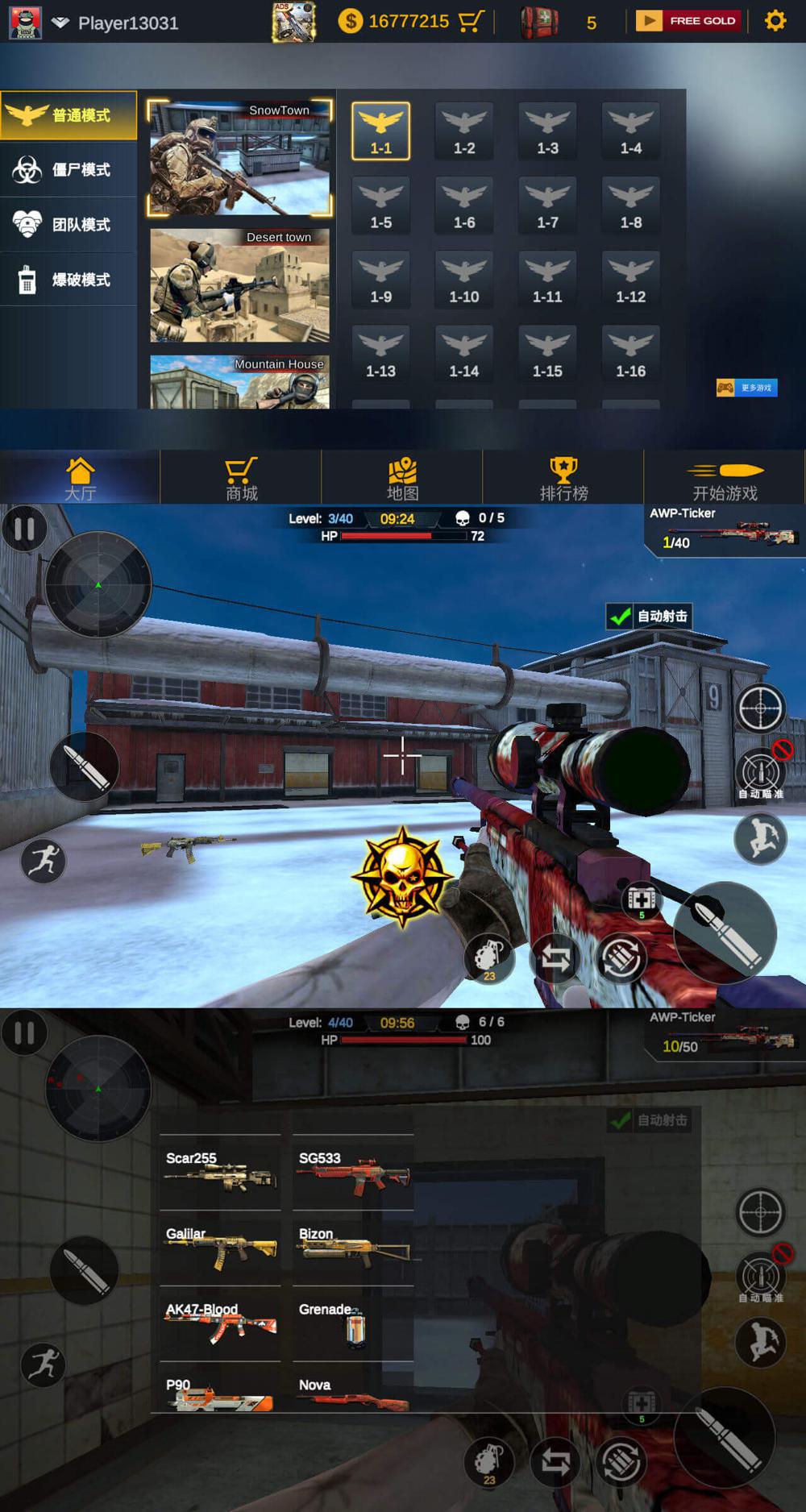 这是一款单人射击游戏,超多CSGO开箱武器,逼真的3D图形和炫酷的动画,多种模式,超多战术地图,操作简单易上手。免费使用金币!
