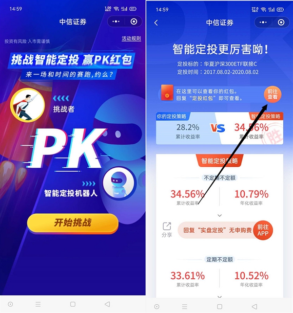 微信搜索“中信证券”小程序 进入后直接开始挑战 按照步骤随机定投即可 不会扣分