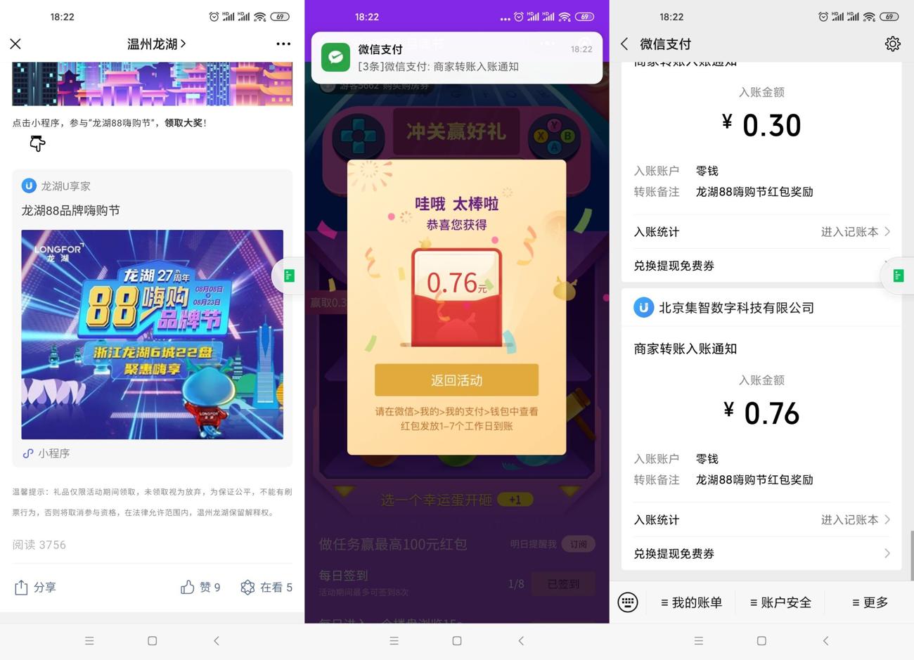 微信打开->下拉到底->点小程序进去->做两个简单任务(签到+楼盘浏览15秒)->然后砸蛋->我中了0.3+0.76元