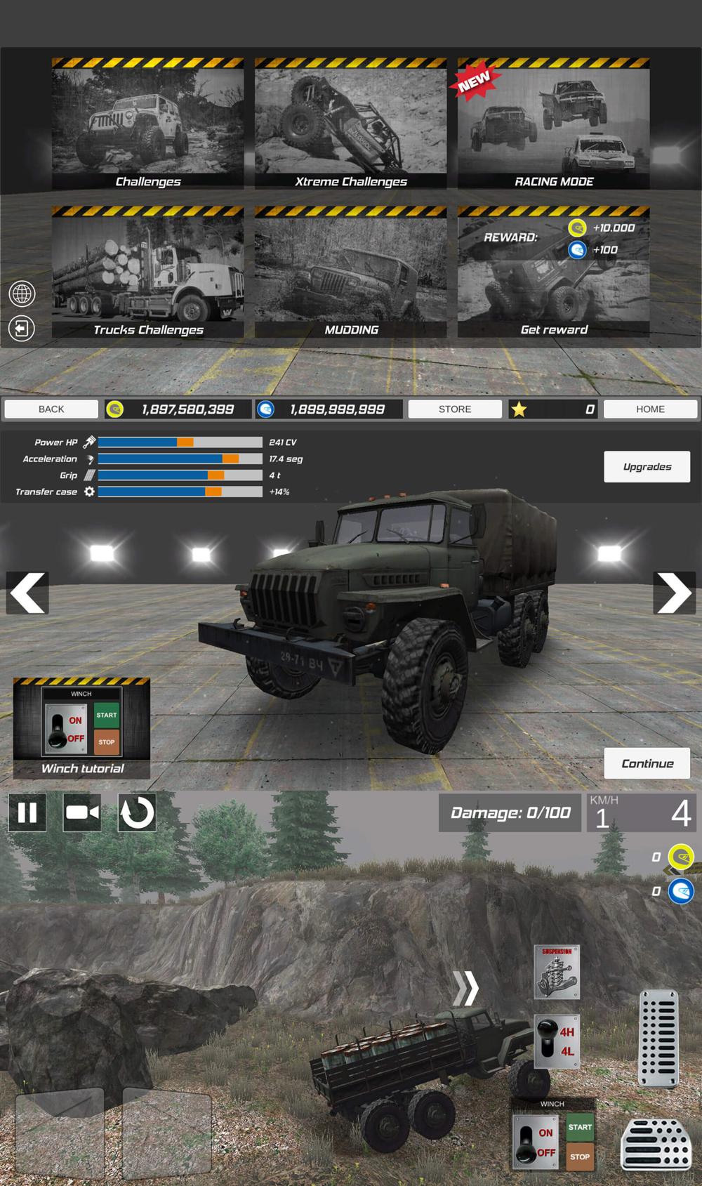 真实物理引擎,驾驶4x4越野车,皮卡车和运货卡车,在非常恶劣的环境中完成所有挑战。免费使用金币!