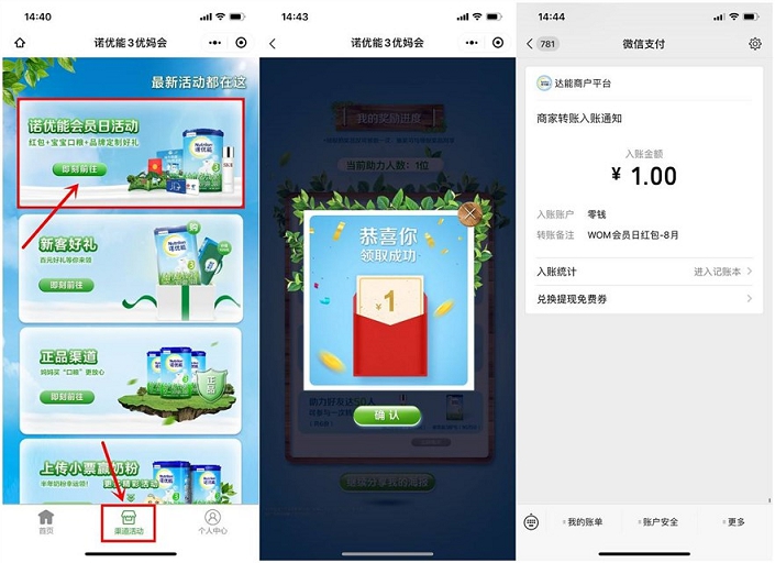诺优能会员日活动 好友助力一次即可领取一元红包亲测秒到