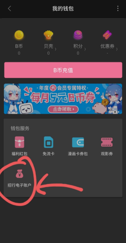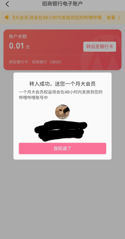 哔哩哔哩招商银行免费领取一个月会员活动