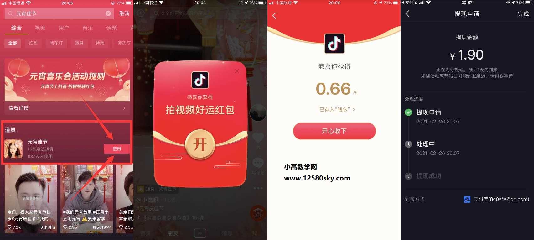 抖音老用户元宵领1~5元红包活动