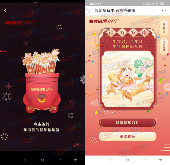 进入后点击签筒召唤福运,进入后提示“领取新年好礼”就中奖了