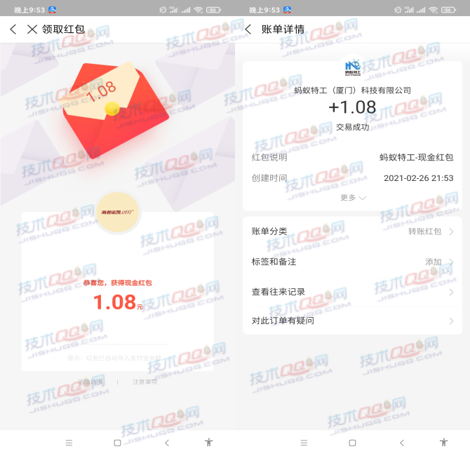 小编抽到了1.08元红包,领取后秒到支付宝账户