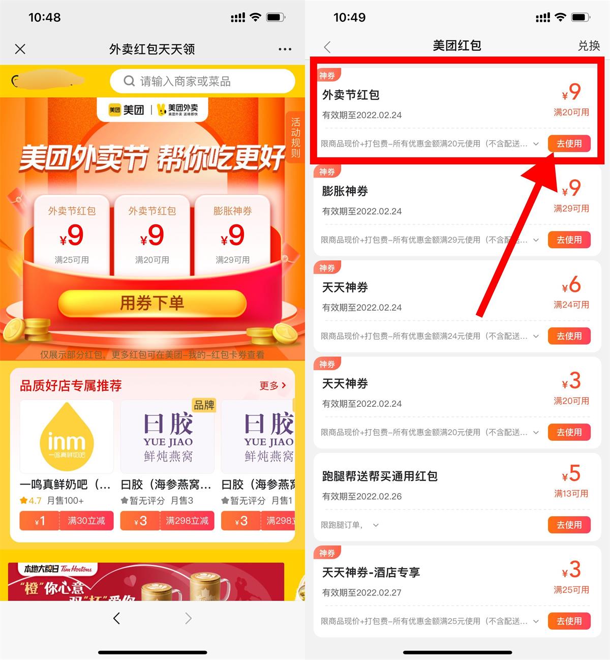 美团外卖神券节领取20-9元券