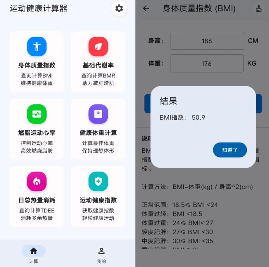拥有身体质量,燃脂运动等计算器