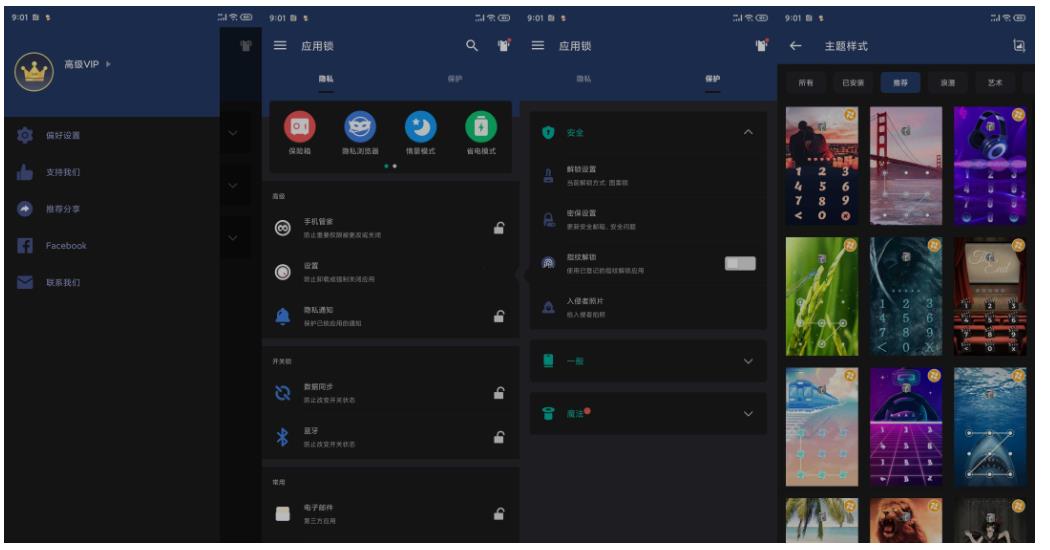 • 锁应用: 选择密码锁,图形锁,即将发布的指纹锁