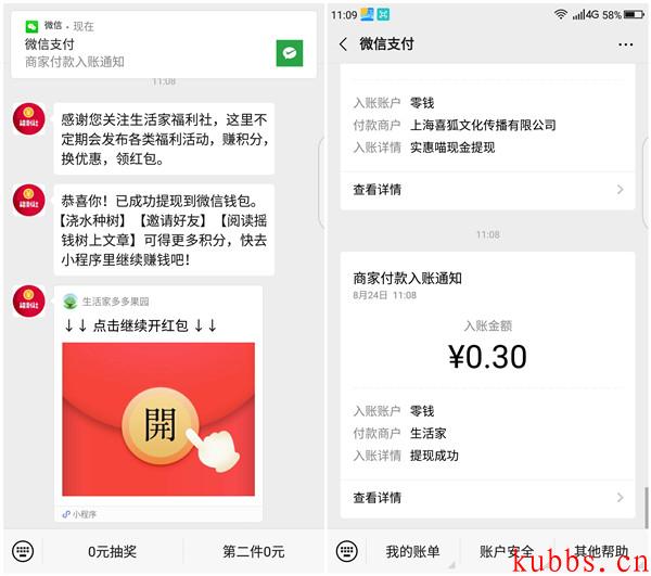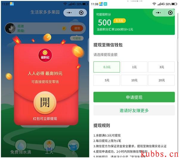 生活家多多果园小程序亲测0.3元微信红包 秒推必中 黑号可参与 微信小程序搜索【生活家多多果园】进入点击弹窗开红包,点击立即提现跟随提示关注公众号等立即提现 红包秒到账 黑号可参与 余额满0.3元即可立即提现 每天可提现1笔 |