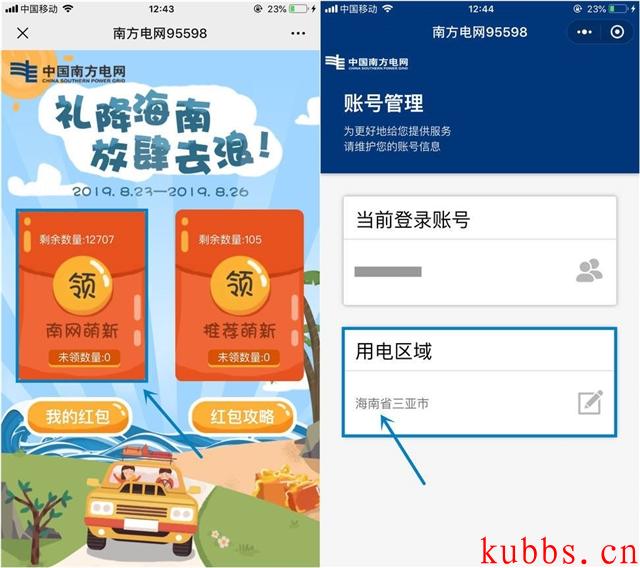 关注公众号后会有推文 点击推文进入“南网萌新点击领取” 根据提示关注小程序用电地区设置为海南省任意城市 设置好返回在领取红包即可