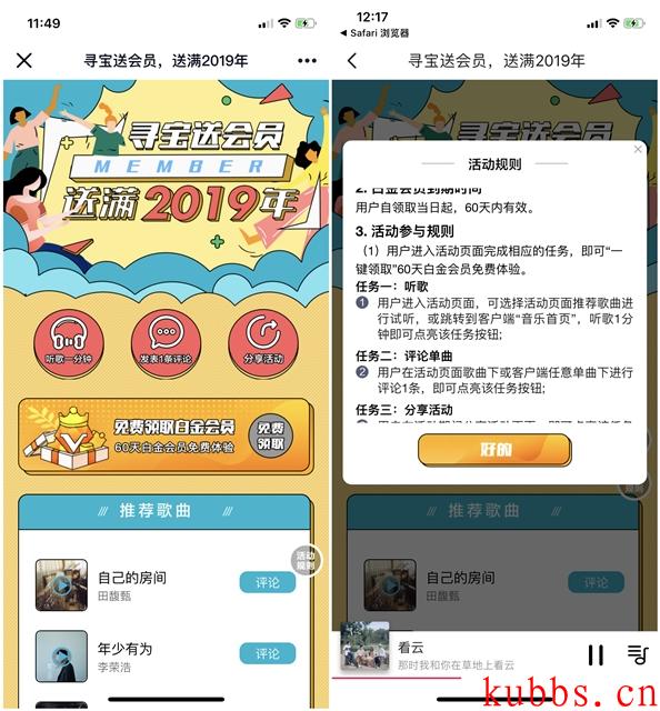 分别是:听歌一分钟 评论一条 分享活动 都完成以后刷新一下界面就可以点击“免费领取”