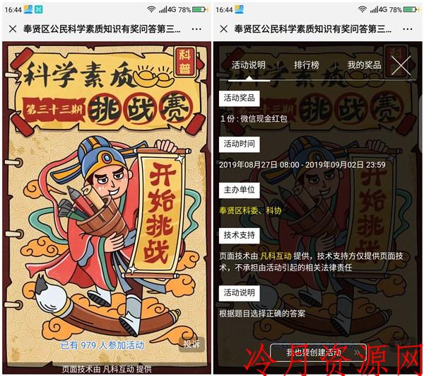 微信公众号搜索【奉贤科技发布】关注后阅读第1条历史文章“阅读原文”即可进入答题页面