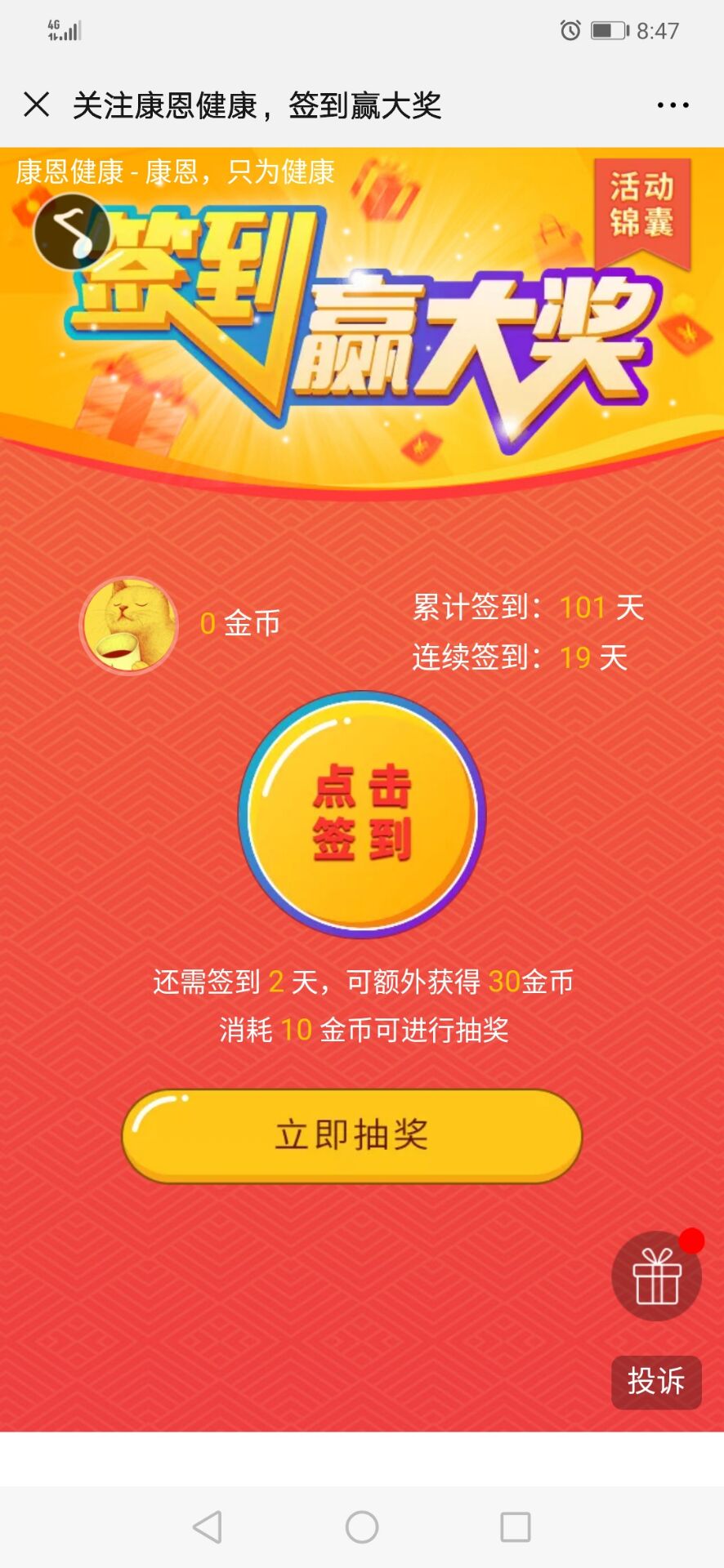 康恩健康 ,每日签到赢微信红包