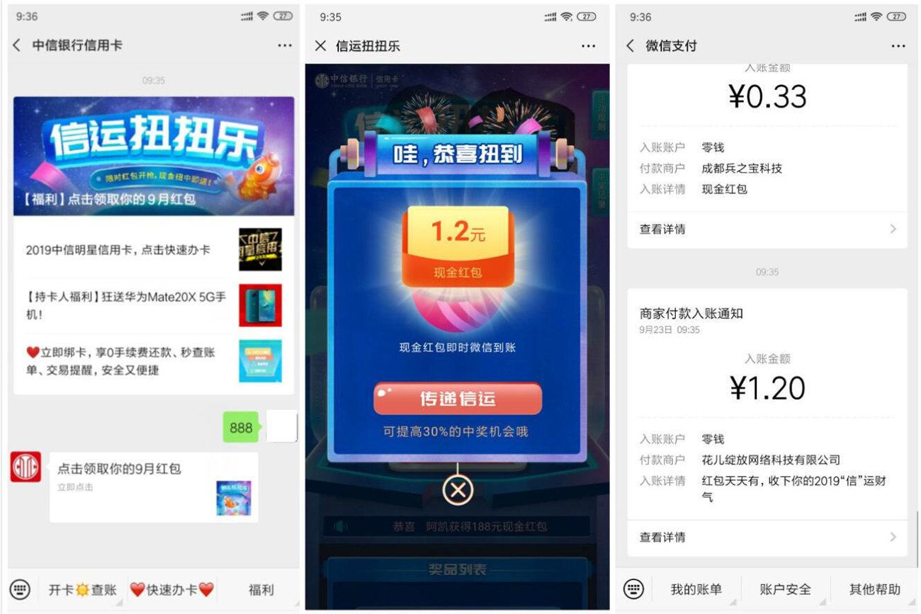 中信银行信用卡几率抽红包