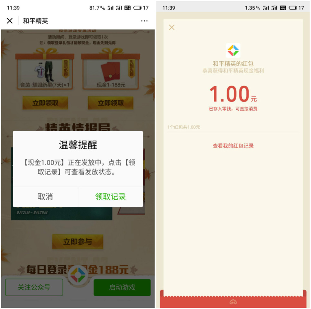 活动一:微信登录游戏后->微信扫码->先领右边套装->再领左边红包