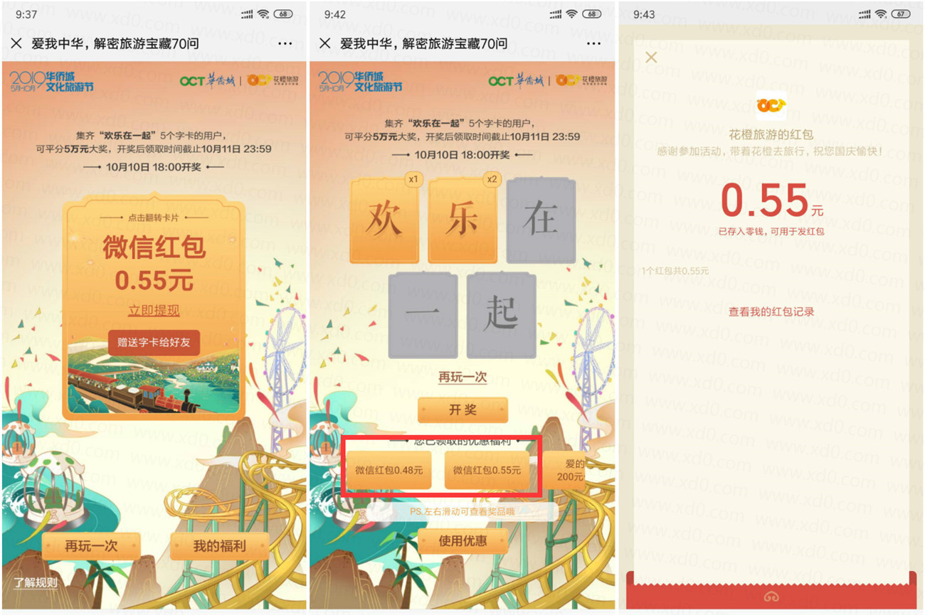 花橙旅游翻卡片抽随机红包