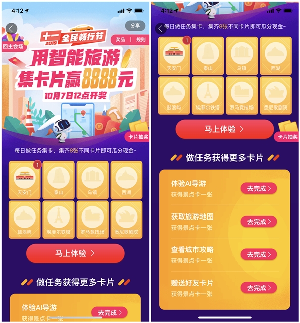 百度地图畅行十一集卡赢现金 最高8888元 10月7日开奖