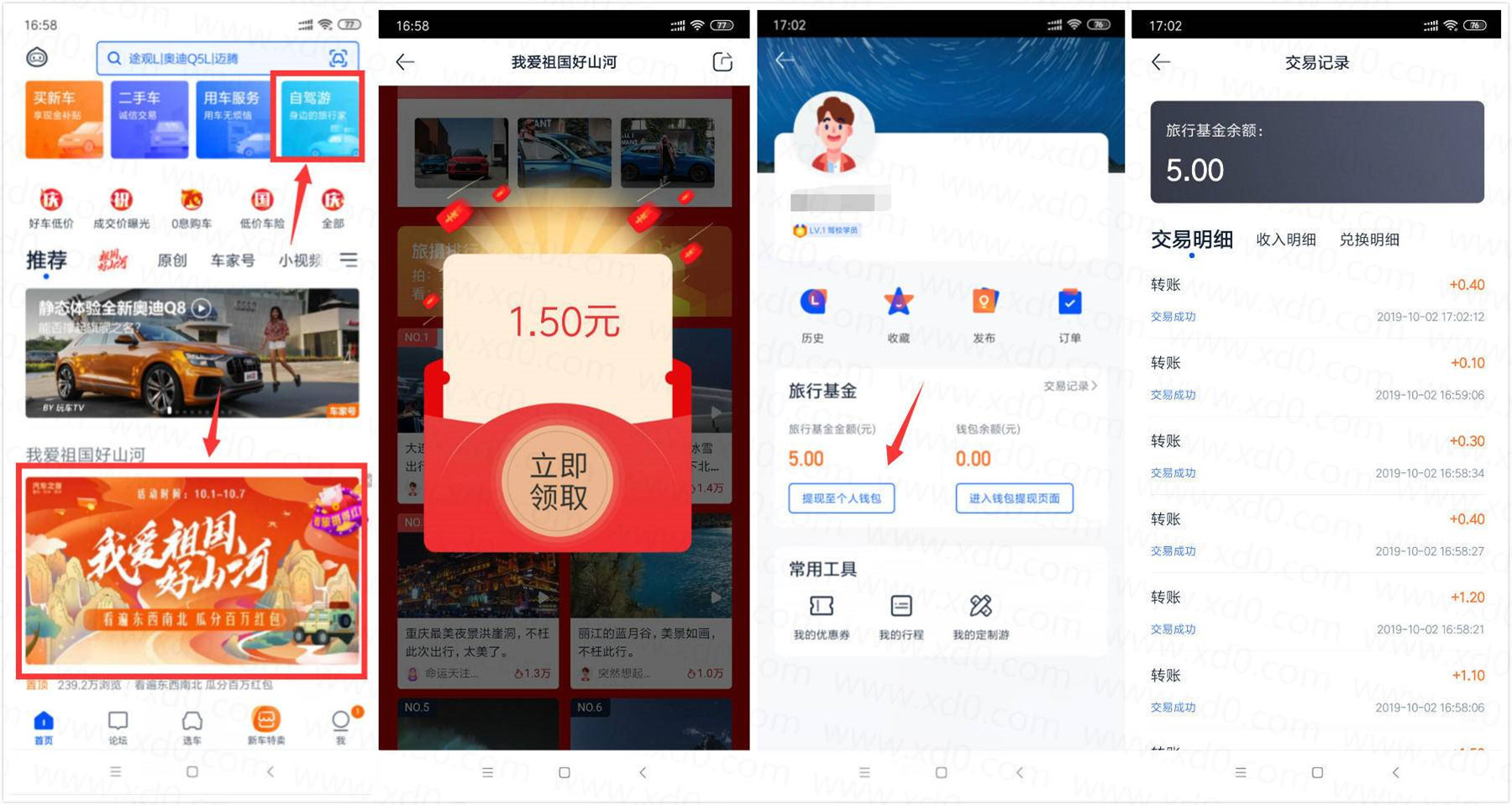 3.多点几个视频直到不弹->返回首页->右上角自驾游->右上角->提现