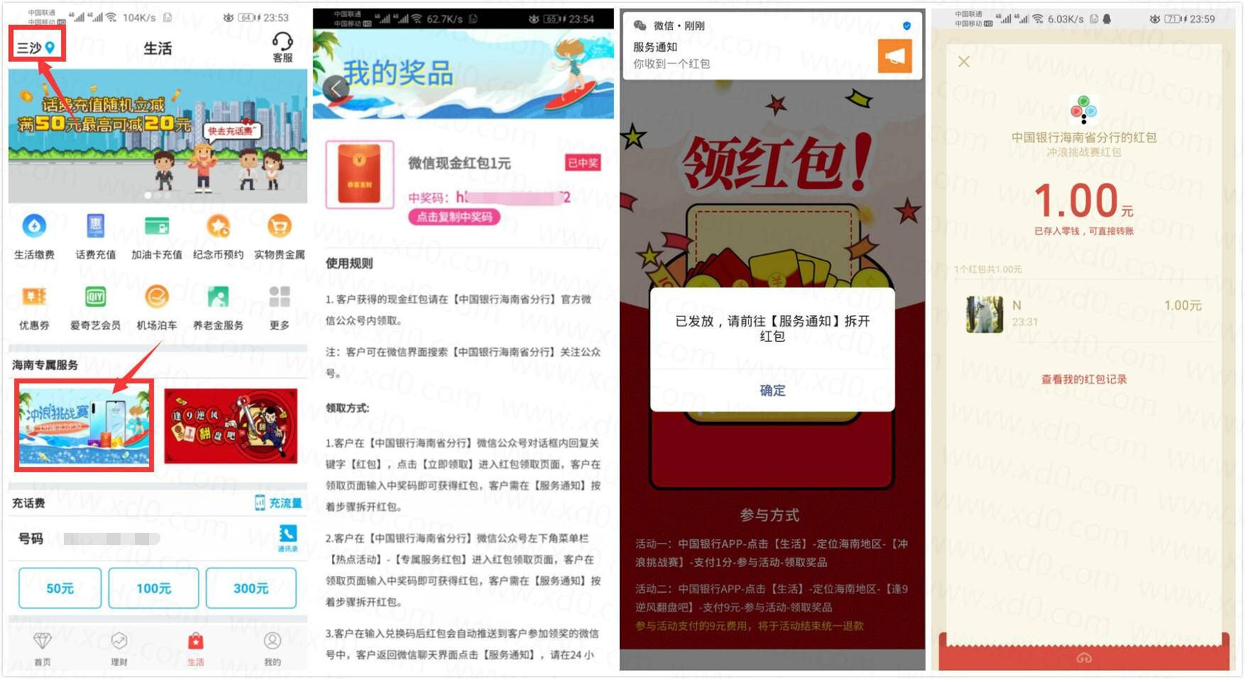 1.中国银行APP->底部->生活-左上角改->海南->任意地区>下拉页面左边