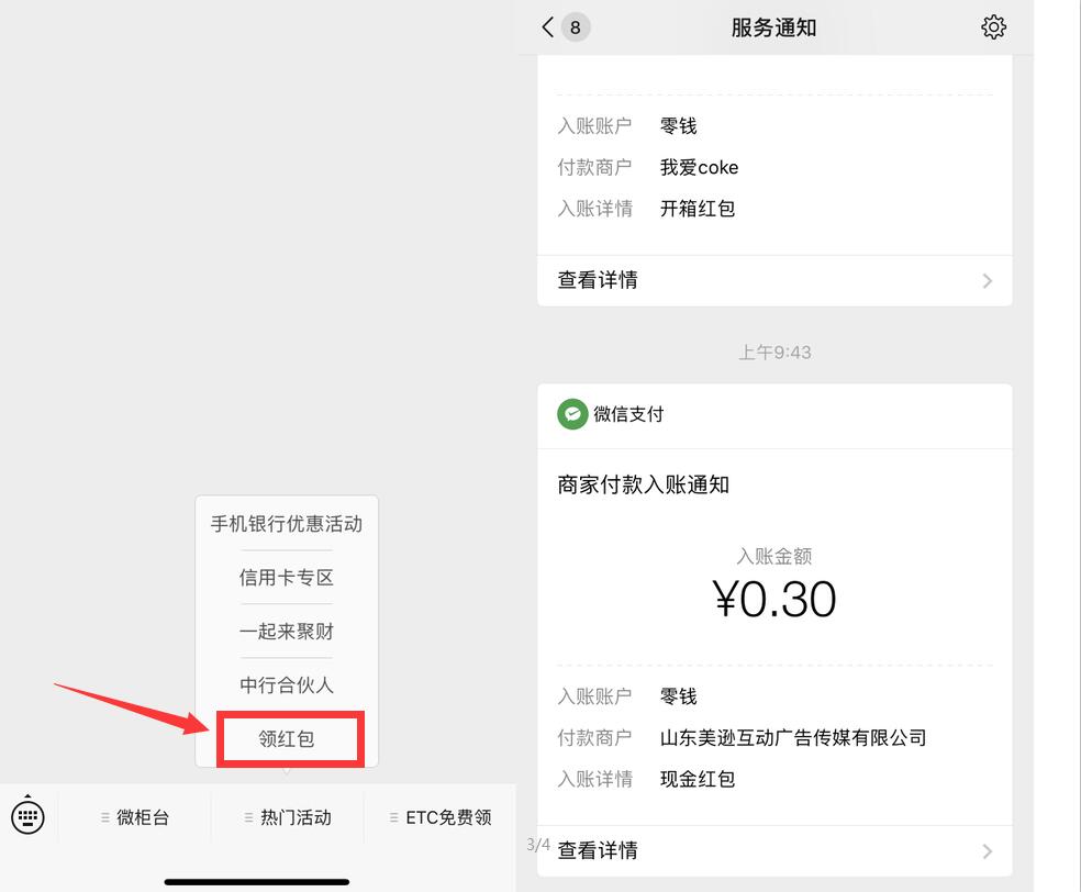 中国银行山东分行领0.3元微信红包