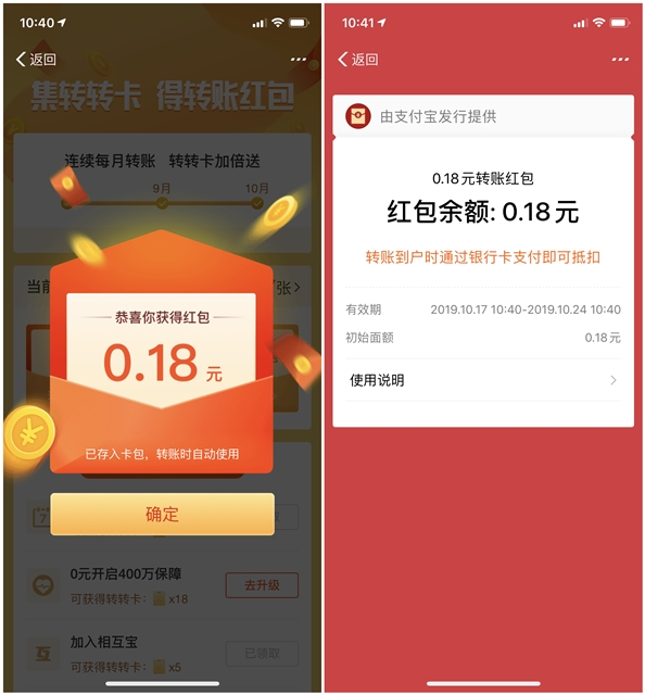 支付宝搜索“转转卡”进去领取8月9月10月的转转卡 做下面简单的任务还可以获得