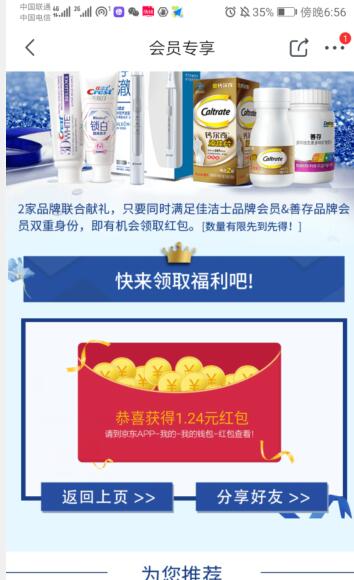 京东关注店铺 亲测1.24元红包