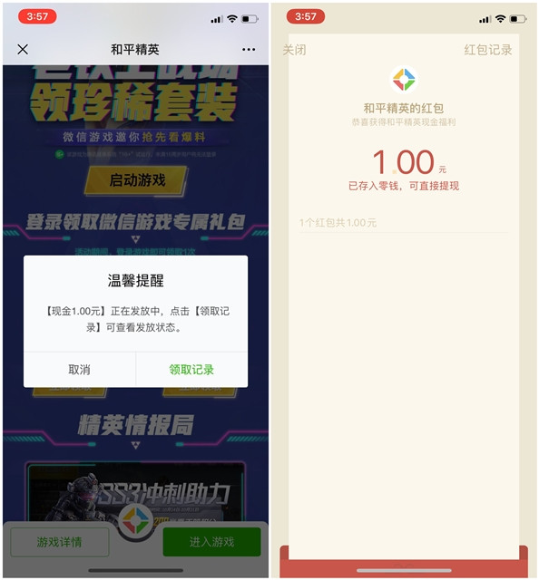 和平精英登录领1元微信红包