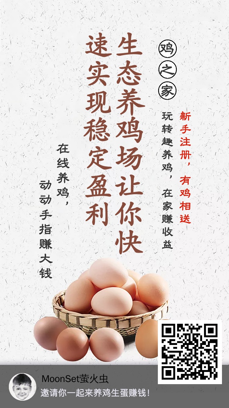 第二:下载后,注册买400的绿蛋鸡! 24小时后挂集市卖440 秒赚40,更简单,更粗暴!鸡蛋价值一直再涨,早上车早吃肉!!!