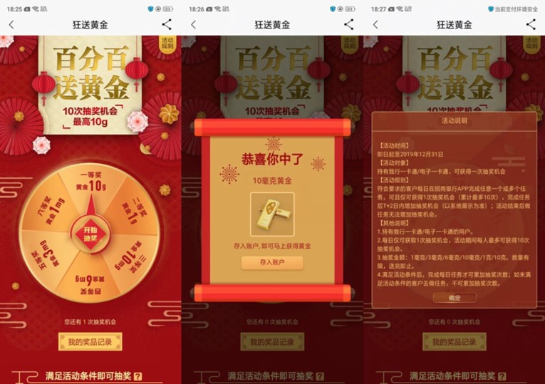 抽中黄金-存入账户-再卖出-即可到账 老用户次数会比较多
