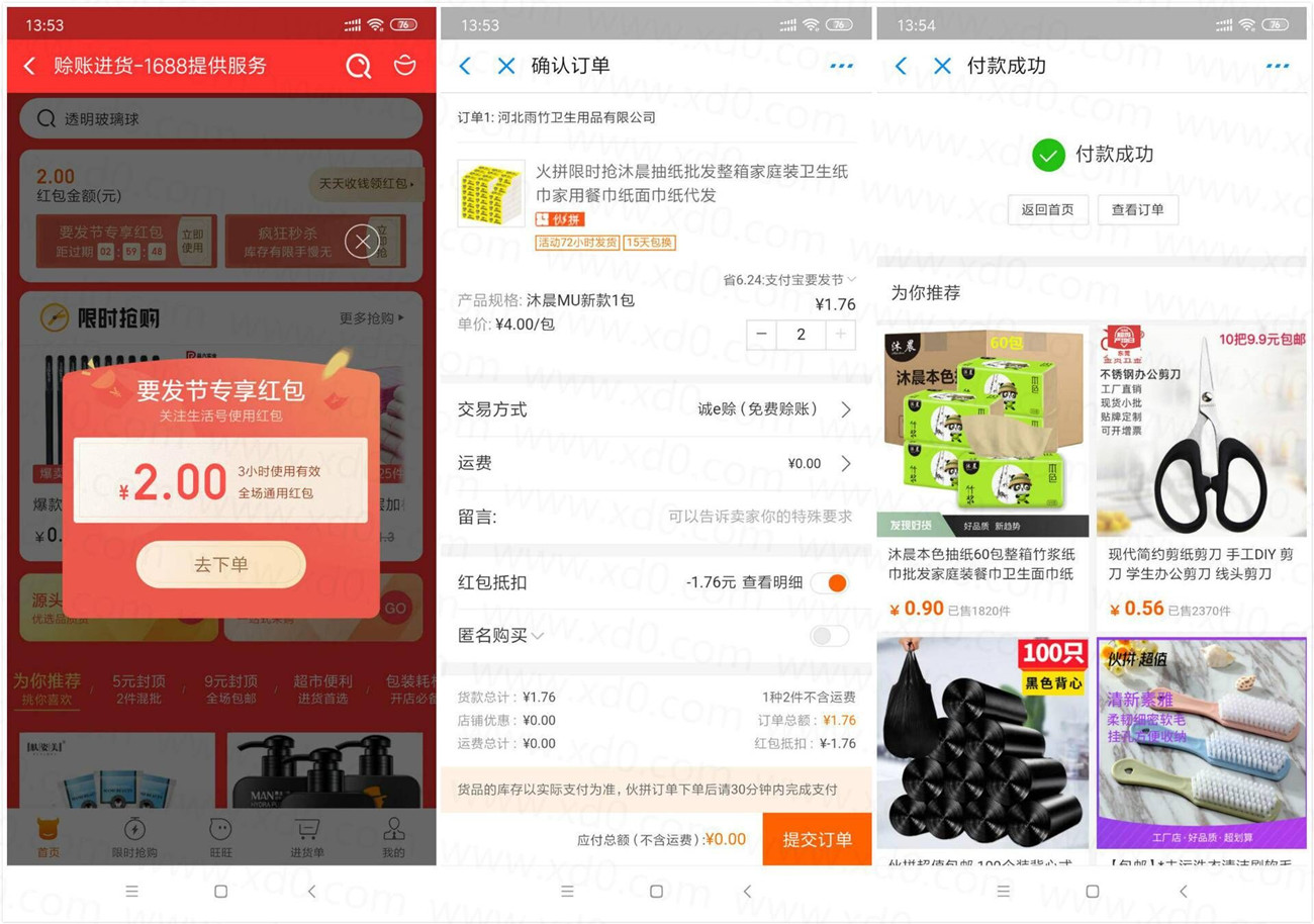 然后打开纸链接->下单2份->0元包邮->还有其它2元包邮的自己找下