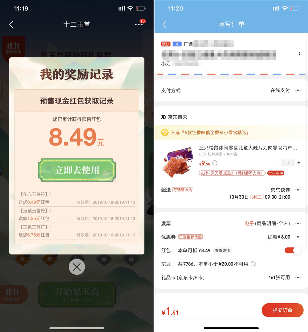 根据提示逛店铺返回一共五次机会抽奖->亲测中了8.6