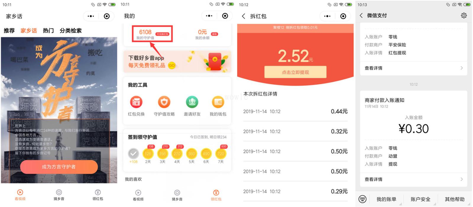 微信小程序搜索“好乡音”进去后随便选->成为方言守护者->然后去我的->我的守护值