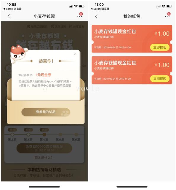 这样就又可以抽将两次 小编亲测两次1元现金券 现金券可以直接提现到银行账户