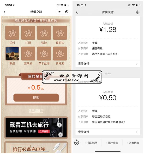 丝绸之旅支付1分钱必得现金红包 亲测0.5元 秒推送