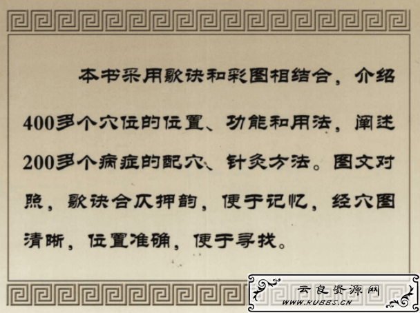 | 2008年出版的一本执业医师用书,作者徐玉琢,不仅对针灸穴位和手法有详细的讲解,还配有针灸歌诀+真人彩色图谱,书店曾一书难求。 看了这本书,我对针灸有了全新的认识,正如一位网友所说,这是一本非常好工具书。 百度百科介绍:针灸歌诀配彩色图谱 京东商城:https://item.jd.com/34681460405.html 淘宝:https://detail.tmall.com/item.htm?id=5064547940 网盘PDF:https://www.57fx.com/file/7230047.html PDF在线:https://max.book118.com/html/2018/0317/157680081.shtm ![]() 作品目录编辑 第一章 十四经循行歌诀 一、手太阴肺经循行歌诀 二、手阳明大肠经循行歌诀 三、足阳明胃经循行歌诀 四、足太阴脾经循行歌诀 五、手少阴心经循行歌诀 六、手太阳小肠经循行歌诀 七、足太阳膀胱经循行歌诀 八、足少阴肾经循行歌诀 九、手厥阴心包经循行歌诀 十、手少阳三焦经循行歌诀 十一、足少阳胆经循行歌诀 十二、足厥阴肝经循行歌诀 十三、督脉循行歌诀 十四、任脉循行歌诀 第二章 十四经主病歌诀 一、手太阴肺经主病歌诀 二、手阳明大肠经主病歌诀 三、足阳明胃经主病歌诀 四、足太阴脾经主病歌诀 五、手少阴心经主病歌诀 六、手太阳小肠经主病歌诀 七、足太阳膀胱经主病歌诀 八、足少阴肾经主病歌诀 九、手厥阴心包经主病歌诀 十、手少阳三焦经主病歌诀 十一、足少阳胆经主病歌诀 十二、足厥阴肝经主病歌诀 十三、督脉主病歌诀 十四、任脉主病歌诀 第三章 十四经属穴生处图文对照歌诀 一、手太阴肺经属穴生处图文对照歌诀 二、手阳明大肠经属穴生处图文对照歌诀 三、足阳明胃经属穴生处图文对照歌诀 四、足太阴脾经属穴生处图文对照歌诀 五、手少阴心经属穴生处图文对照歌诀 六、手太阳小肠经属穴生处图文对照歌诀 七、足太阳膀胱经属穴生处图文对照歌诀 八、足少阴肾经属穴生处图文对照歌诀 九、手厥阴心包经属穴生处图文对照歌诀 十、手少阳三焦经属穴生处图文对照歌诀 十一、足少阳胆经属穴生处图文对照歌诀 十二、足厥阴肝经属穴生处图文对照歌诀 十三、督脉属穴生处图文对照歌诀 十四、任脉属穴生处图文对照歌诀 十五、经外奇穴生处图文对照歌诀 第四章 十四经属穴生处、功能、用法分述歌诀 一、肺经属穴生处、功能、用法分述歌诀 中府 云门 天府 侠白 尺泽 孔最 列缺 经渠 太渊 鱼际 少商 二、大肠经属穴生处、功能、用法分述歌诀 商阳 二间 三间 合谷 阳溪 偏历 温溜 下廉 上廉 手三里 曲池 肘髎 五里 臂臑 肩髃 巨骨 天鼎 扶突 禾髎 迎香 三、胃经属穴生处、功能、用法分述歌诀 承泣 四白 巨髎 地仓 大迎 颊车 下关 头维 人迎 水突 气舍 缺盆 气户 库房 屋翳 膺窗 乳中 乳根 不容 承满 第五章 常用经穴主治歌诀 第六章 对病对症配穴施治歌诀 第七章 美容美体美发配穴歌诀 第八章 针灸操作歌诀 附录 人体骨度分寸法图谱 |