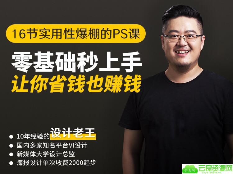 设计老王《16节实用性爆棚PS课》,零基础秒上手,让你省钱也赚钱。